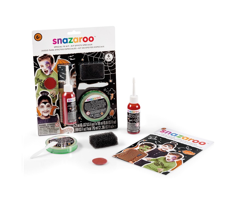 * fine serie *SNAZAROO SPECIAL FX KIT Trucchi Effetti Speciali Make Up Carnevale- Ref. 1172077Il kit contiene:- 1 sangue gel da 50ml- 1 pastiglia di cerone da 18ml- 1 spugna stripple (effetto puntini)- 1 colore rosso da 2ml- 1 spatolina per cerone- 1 guida passo a passo per gli effetti.