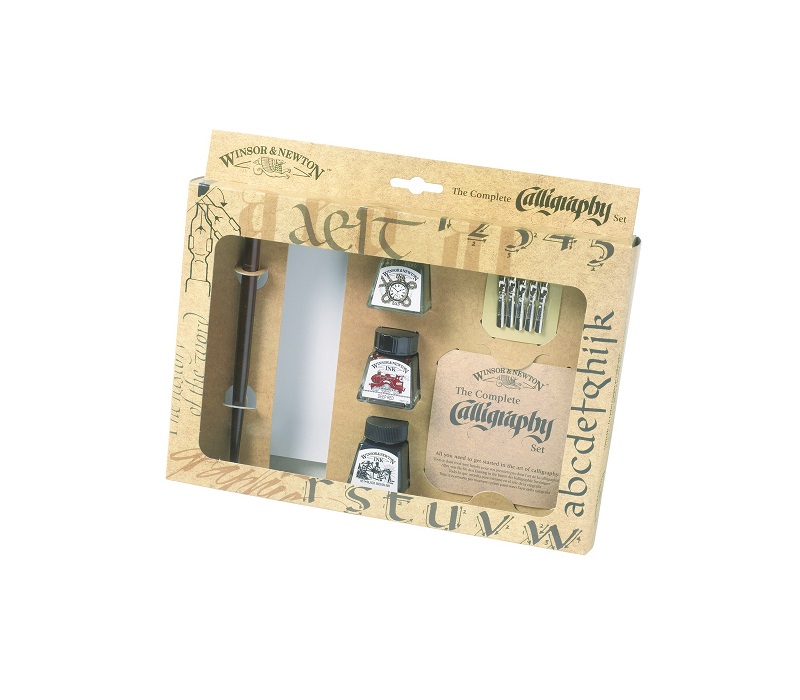 * PROMO *CONFEZIONE REGALO CALLIGRAPHY INCHIOSTRI CALLIGRAFICIRef. 1190190La confezione in cartone contiene: 3 flaconi inchiostro da 14ml (Nero Indiano Rosso Scuro e Oro) 1 Cannuccia in legno5 Pennini 1 Album Cartridge A5 110 g. con 20 fogli lisci 1 Depliant.