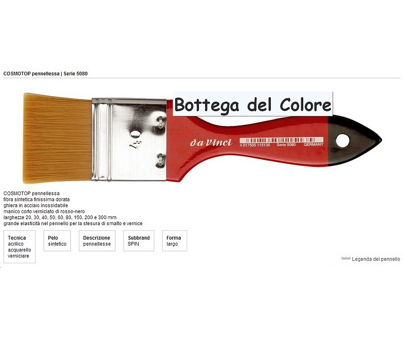 * ultimo pezzo *S.5080 Pennellessa n.150COSMOTOP pennellessa fibra sintetica finissima dorata ghiera in acciaio inossidabile manico corto verniciato di rosso-nero.Larghezze 20 30 40 50 60 80 150 200 e 300 mm.Grande elasticita nel pennello per la stesura di smalto e vernice adatte per realizzare imitazioni marezzatura e fondi.