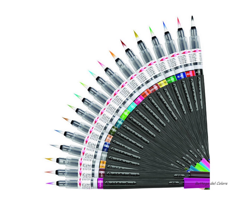 COLOR BRUSH - GFLPenna con punta a pennello a inchiostro coloratoSpeciale penna con punta a pennello e serbatoio ad inchiostro colorato a base d'acqua. Resistenti setole in nylon  lo rendono ideale per la tecnica ad acquerello e la calligrafia. Serbatoio da 5 ml. Disponibile in 18 colori brillanti. Ricaricabile con refill FR-100.Caratteristiche:-Prodotto esente da PVC per rispetto dell'ambiente.-Ricaricabile-Punta a pennarello-Per carta-Inchiostro a pigmenti resistente all'acqua e alla luce-Inchiostro a tinta.La punta a pennello per diventare dei veri artisti.Colour Brush e caratterizzato da una punta a pennello e dalla presenza di inchiostro colorato nel fusto.La punta e composta da setole in nylon di elevata qualita che permettono di ottenere linee sottili o tratti piu spessi. L'inchiostro si stende in modo molto scorrevole e asciuga rapidamente. I colori possono essere mescolati tra loro per ottenere splendidi effetti acquerello. Aggiungendo ulteriore acqua  potrete creare diverse sfumature di colore. Colour Brush e disponibile in 18 brillanti tonalita ed e ricaricabile.Facile da utilizzare e sempre pronto all'uso  con Colour Brush non hai bisogno di altro materiale ma solo di un foglio di carta per cominciare il tuo lavoro.Per suggerimenti  consigli e qualche simpatica idea da realizzare  dai un'occhiata alla sezione "Laboratorio Creativo".