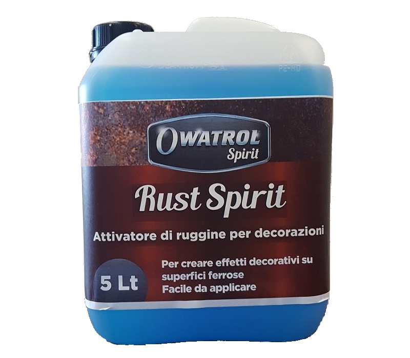 Rust Spirit e' un potente attivatore di ruggine utilizzabile per creare degli effetti decorativi su superfici ferrose. Permette la creazione di vere e proprie decorazioni su oggetti supporti e materiali ferrosi. Facile da applicare mediante nebulizzatore pennello o rullo.