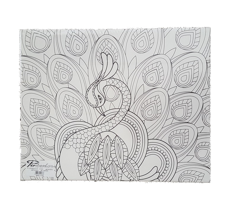 Telaio telato cm.50x40 Pintcolor Art TherapyA120 PavonePintcolor presenta una collana di disegni illustrati su tela pensati specificatamente per essere disegnati da adulti.La tela in puro cotone garantisce un totale assorbimento delle tinte con qualunque tipologia di colore (PENNARELLI PASTELLI ACQUARELLI TEMPERA ACRILICI MATITE OLIO).La stampa e' realizzata con tecnica latex che utilizza tinte naturali a base di acqua.Il telaio in legno da cm. 3 5 e' rivestito in tela senza chiodi e permette di colorare anche sui bordi e appendere il Pintcolor direttamente al muro senza cornice.ART-THERAPYNell' Art Therapy potrai dare sfogo alla tua fantasia in base al tuo stato d'animo non ci sono regole! Il cielo puo' diventare verde il prato blu l'importante e' sentirsi rilassati e liberi senza costrizioni di tecniche o di colori.Solitamente l'Art Therapy viene utilizzata da chi vuole ritrovare calma e tranquillita' o staccare dallo stress e dalla frenesia di tutti i giorni o semplicemente come hobby e spassatempo.