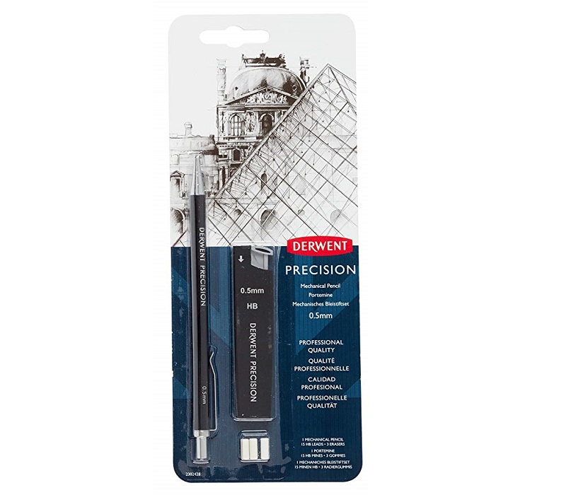DERWENT PRECISION SET - ref. 2302428 -Matita meccanica / portamina   Ideale per gli abbozzatori e i professionisti del disegno tecnico  vanta un corpo in metallo di alta qualita che e stato progettato per una presa e un equilibrio ottimali. Disponibile in due misure ( 0 5 e 0 7 mm ). Le matite meccaniche di precisione Derwent includono una gomma incorporata sotto il cappuccio del pulsante e il pennino retrattile le rende tascabili.Questo set comprende1 portamine Precision15 ricariche HB3 gommine