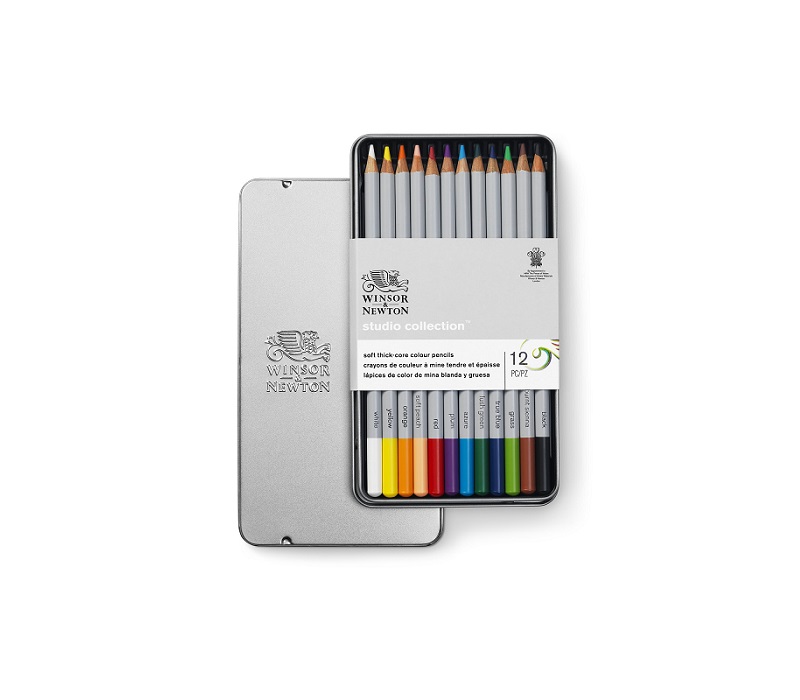 Una nuova gamma di matite di qualita ad un prezzo accessibile appositamente progettate per le arti grafiche e l'ambientazione a colori. Mina di alta qualita concentrata ed incollata su tutta la lunghezza: la rende estremamente resistente alla rottura.Disponibili in diversi assortimenti (24 48) accuratamente composti. Ciascun set ha una custodia in metallo con il logo Winsor & Newton.Contenuto del set da 12: White Soft Peach Yellow Orange Red Plum True Blue Azure Grass Lush Green Burnt Sienna Black.