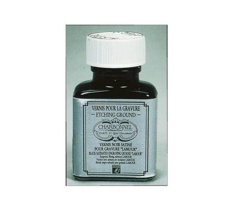 VERNICE NERA LIQUIDA SATINATA LAMOUR 75 ML - Ref. 331277Prima di applicare queste vernici si deve assolutamente sgrassare la piastra. Per farlo mescolare del bianco di Marly con dell'acqua e strofinate la piastra con uno straccio morbido o con un pezzo di cotone. Sciacquare con acqua corrente. Versate sulla piastra una soluzione acidula di aceto e sale. Sciacquare di nuovo. Asciugate velocemente. Durante queste operazioni fate attenzione a non appoggiare le dita sulla piastra. Applicarla a freddo sulla piastra con un pennello molto morbido oppure versandola direttamente su una superficie inclinata. Occorre molto tempo per l'incisione senza rischi di screpolature. Asciuga velocemente poiche contiene essenza di petrolio. E anche piu dura della vernice Ultraflex e permette di fare linee sottili.