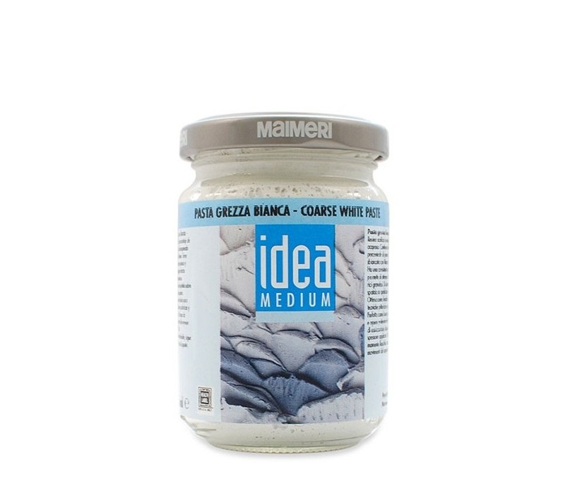 IDEA MEDIUM.Pasta acrilica contenente un?elevata percentuale di pomice di Lipari sbiancata con Bianco di titanio. Ha una consistenza pastosa permette di ottenere effetti materici granulosi. Si stende con la spatola su qualsiasi supporto. Ottima come fondo per tutte le tecniche pittoriche e decorative.